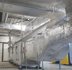 L’une des centrales de traitement d’air dédiée au conditionnement après isolation des gaines techniques et mise en place d’un mode réduit